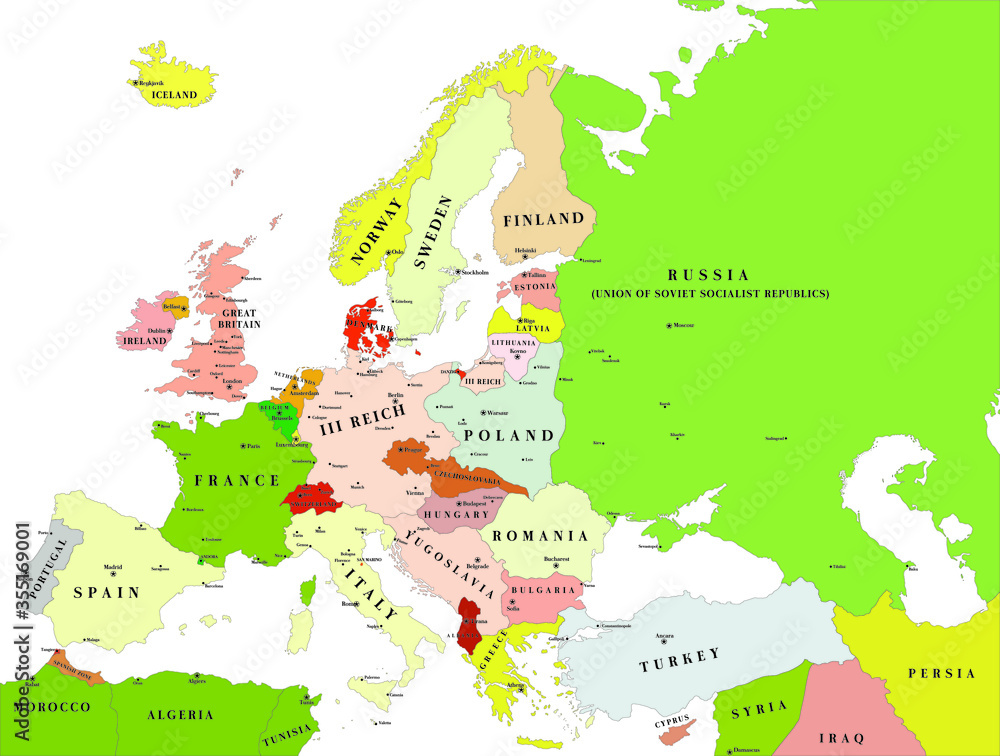 Europe political vector map for the year 1939 Stock Vector | Adobe
